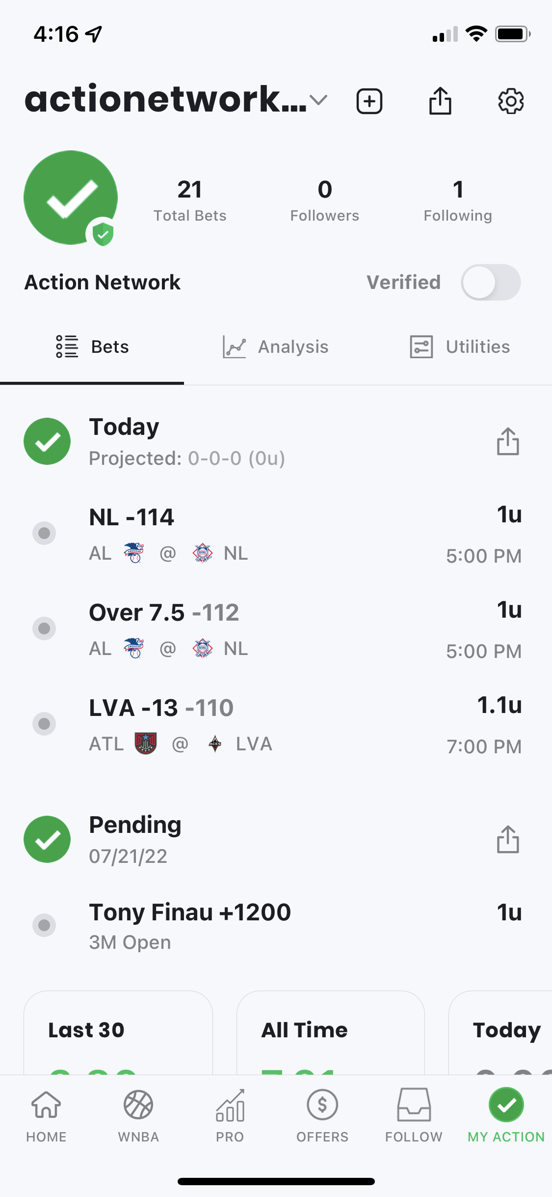 Default bet settings Action Network Action Network Bet Tracking In order to filter by the league, simply click on the second. to track bets through the app, click on the league tab and then the scores and odds section. track your action across all your sportsbooks and proudly share your winning bet tickets. action network is the most trusted source for sports betting insights & analytics,. Action Network Bet Tracking.